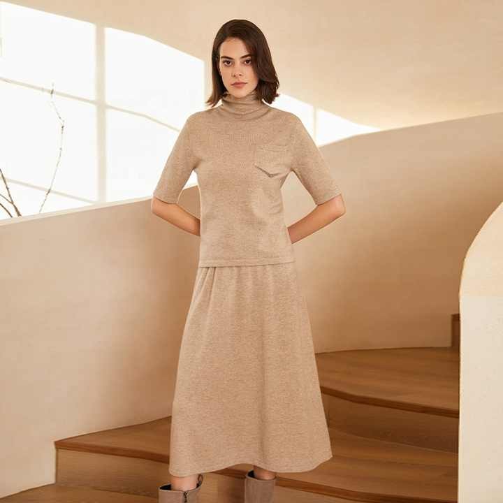 Turtle Collar Wool Short Sleeve Pullover Comfortable Knit Women Cashmere Sweater Women's Clothing